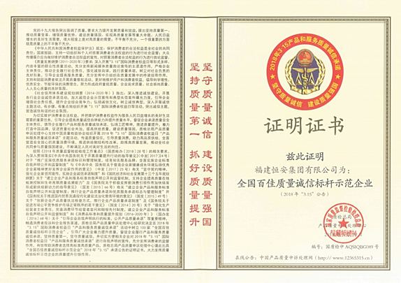 公司先后荣获“天下质量管理先进单位”、“天下质量标杆”、“福建省政府质量奖”、“福建省质量标杆”。